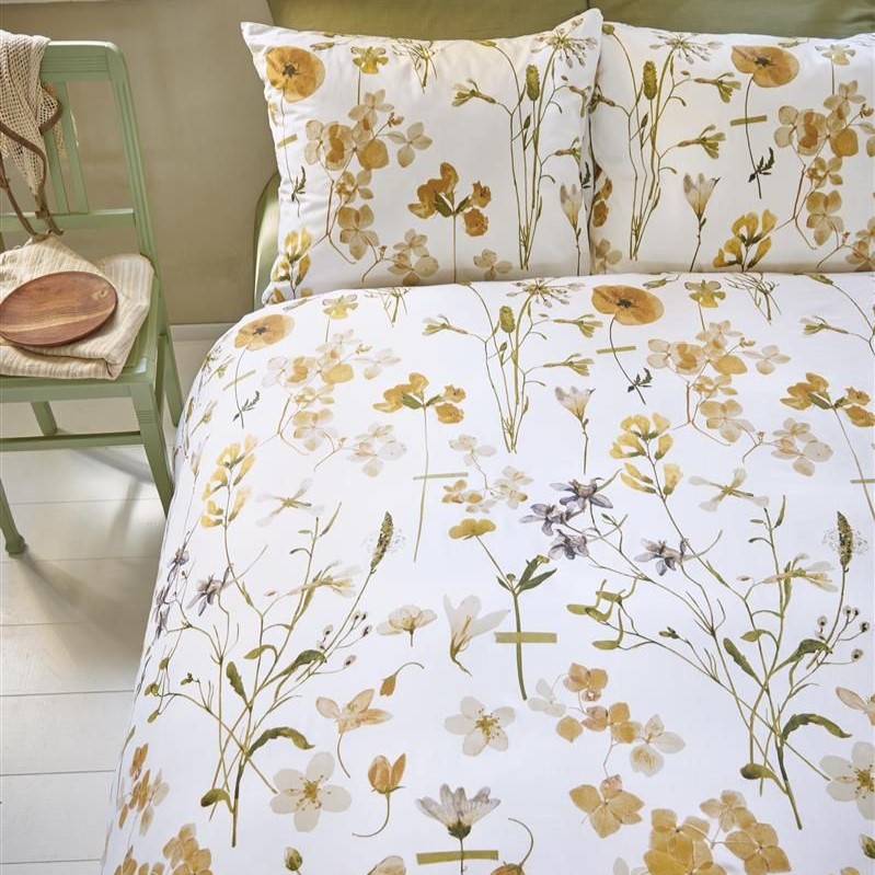 Het dekbedovertrek Flowerlove White van Ariadne at Home heeft een print van zomerse, handgeschilderde bloemen. De wilde bloemen en droogbloemen zijn losjes verdeeld over het overtrek en komen mooi tot hun recht tegen de witte ondergrond. Zowel de kussenslopen als het overtrek zijn aan de voor- en achterkant hetzelfde.