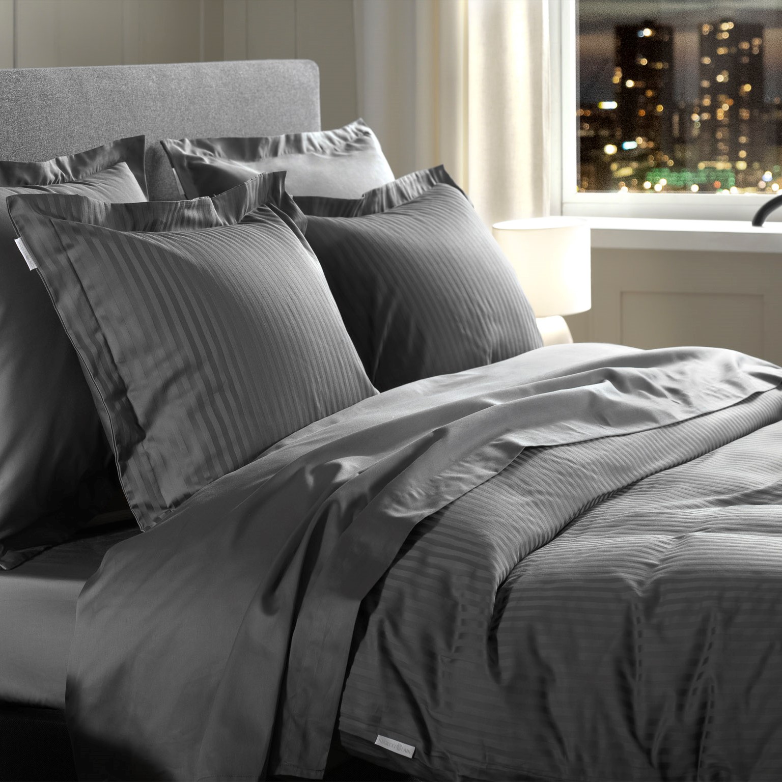 Dekbedovertrek Banda Dark Grey is gemaakt van hoge kwaliteit 100% katoen-satijn (draaddichtheid 240). Het dekbedovertrek HeckettLane Banda Dark Grey heeft een luxe lijnpatroon, en voelt heerlijk zacht en glad. Inclusief Oxford kussenslopen.