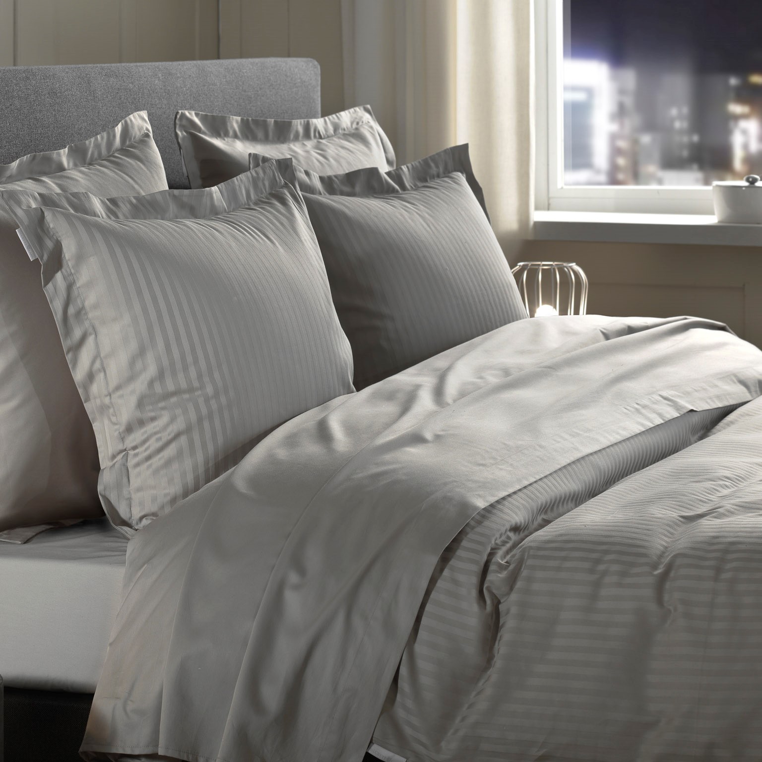 Dekbedovertrek Banda in de kleur Glacier Grey heeft een luxe, klassieke, maar ook speelse uitstraling door de prachtig gewoven strepen.