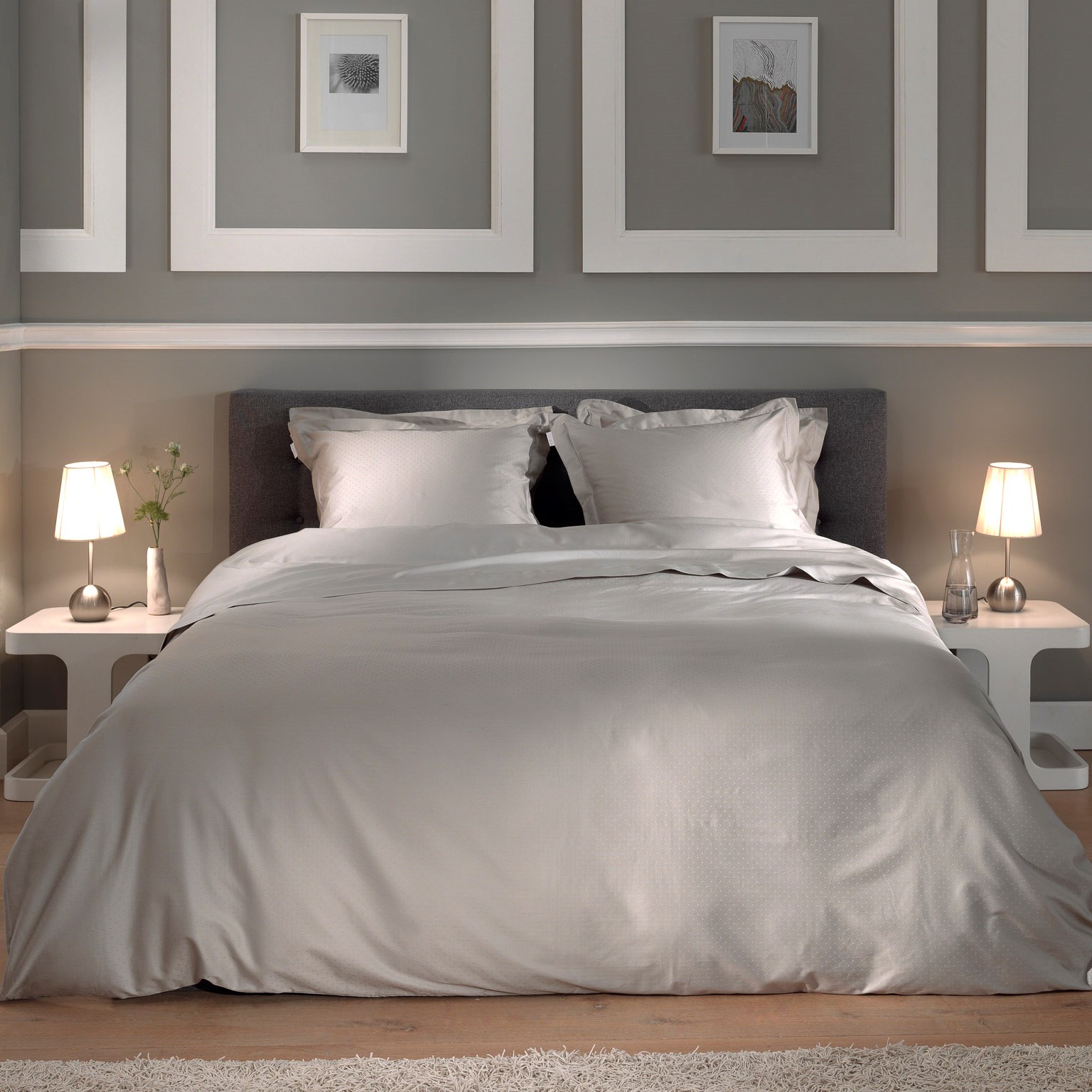 De gewoven stippen geven dit dekbedovertrek een klassieke, luxe, maar ook speelse uitstraling.