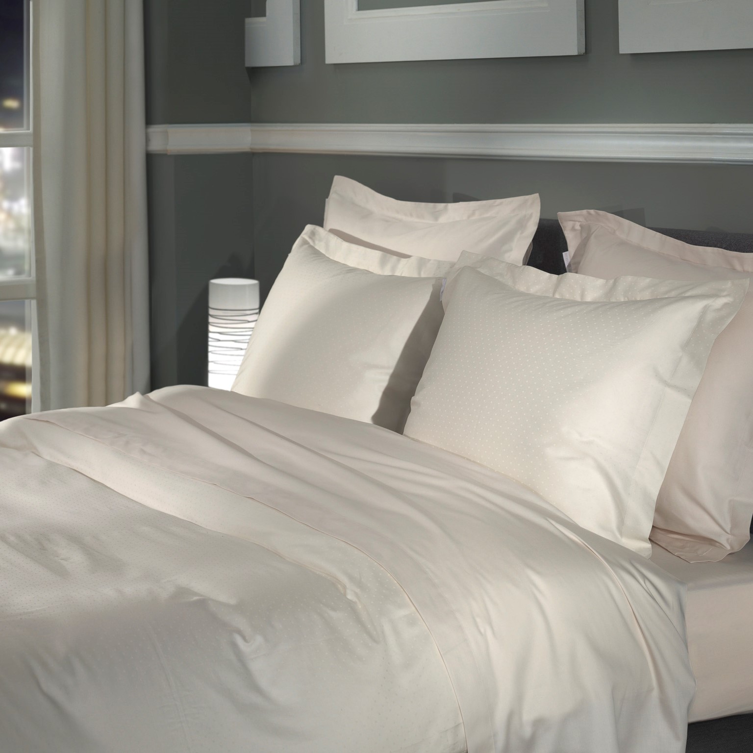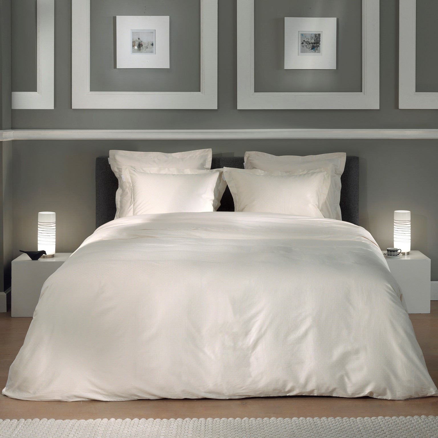Effen HeckettLane dekbedovertrek met gewoven stippendessin in de kleur Off-White.
