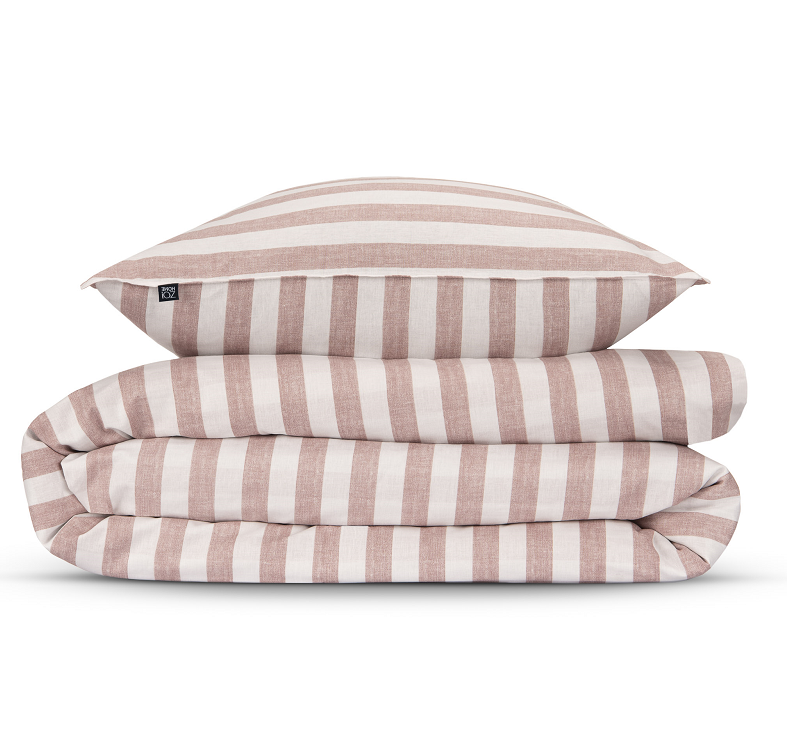 Het tijdloze streeppatroon in zacht-roze met wit is zeer goed te combineren in de moderne slaapkamer zoals de Scandinavische woonstijl.