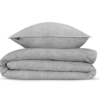 De luchtig gemêleerde stofprint in een zacht grijze tint geeft het overtrek een frisse, tijdloze uitstraling die zeer goed tot zijn recht komt in een Scandinavische of industriële slaapkamer.