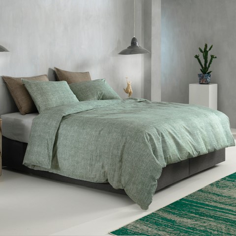 Een linnenlook dekbedovertrek in de kleur Moss Green misstaat eigenlijk nergens.