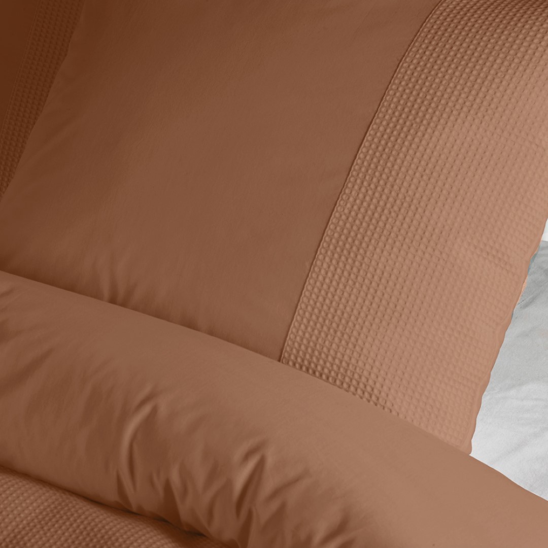 Dit dekbedovertrek is gemaakt van een luxe 100% perkal katoen en heeft een wafelstructuur op de bovenkant. De onderkant van het dekbedovertrek is helemaal glad zodat je geen last hebt van de wafelstructuur op je huid. De Mendoza is een aanwinst voor in je slaapkamer, vanwege het goed te combineren uiterlijk. Perkal-katoen is zacht en het neemt goed transpiratievocht op en ligt erg comfortabel en bezorgt  je een fijne nachtrust.