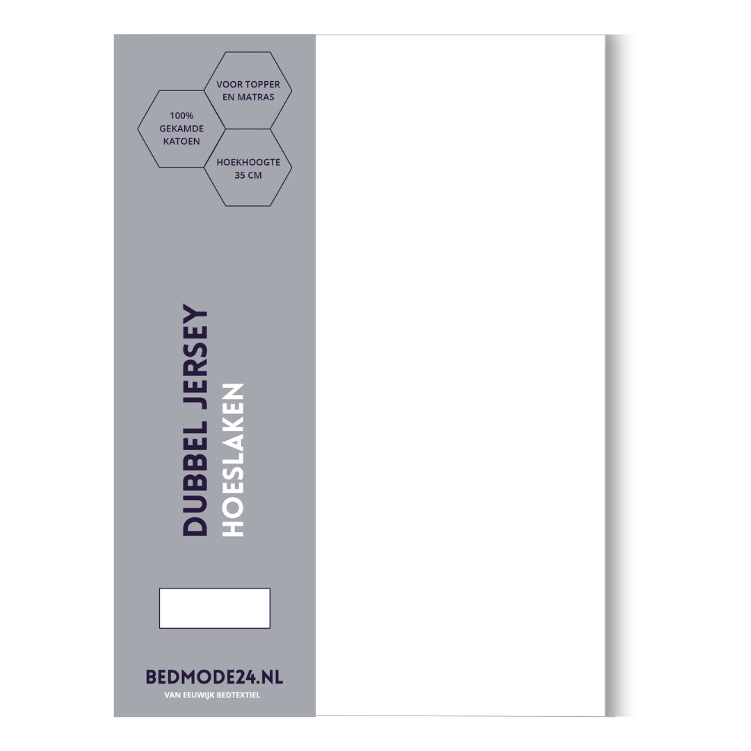 Door de speciale breitechniek is dit hoeslaken Dubbel Jersey Wit rekbaar en blijft het perfect om je matras of topper zitten, met zijn hoge hoek van 35 cm past het goed om je dikke matras en door de stevige elastiek rondom blijft het ook netjes om je topper zitten.